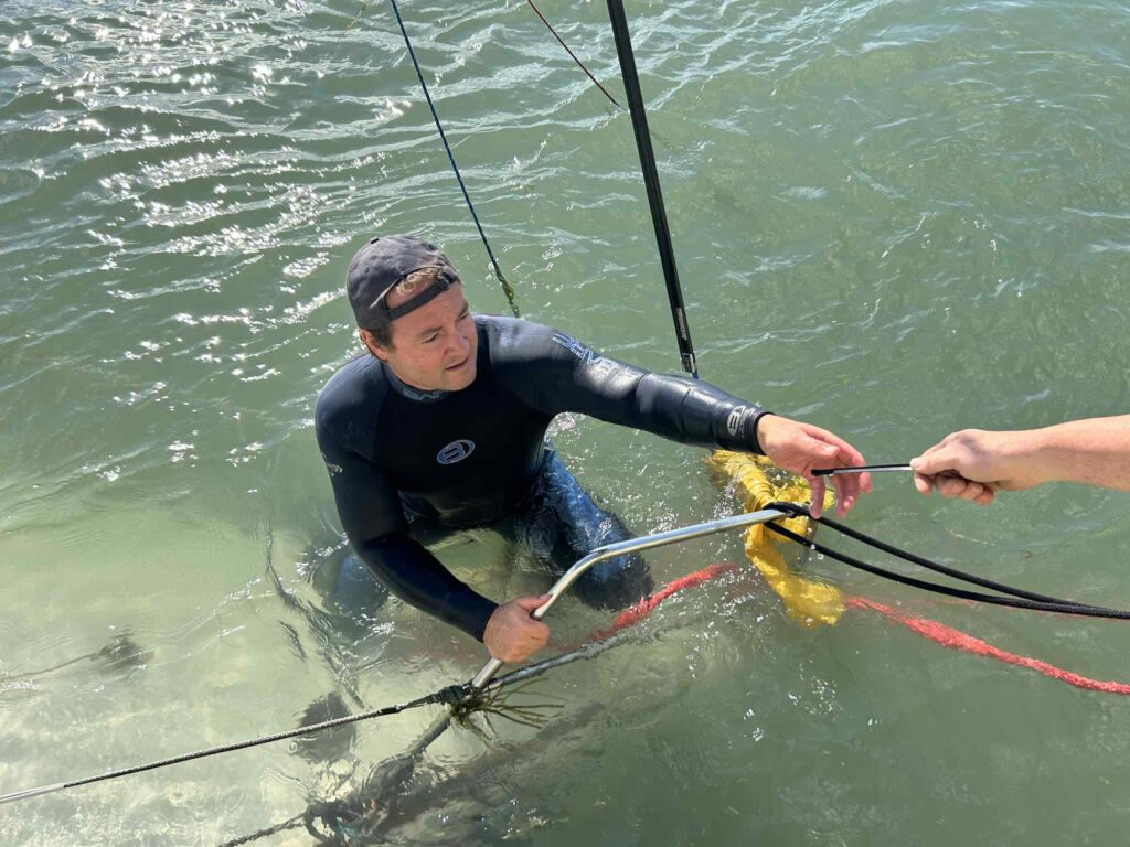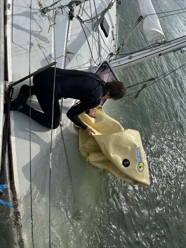 Captain Scott deployed airbags to provide flotation and stability to the vessel, carefully positioning them to lift and support the sailboat as he worked to extract it from the rocks. Using specialized rigging and salvage equipment, he methodically freed the J30 while minimizing environmental impact and ensuring everyone’s safety.