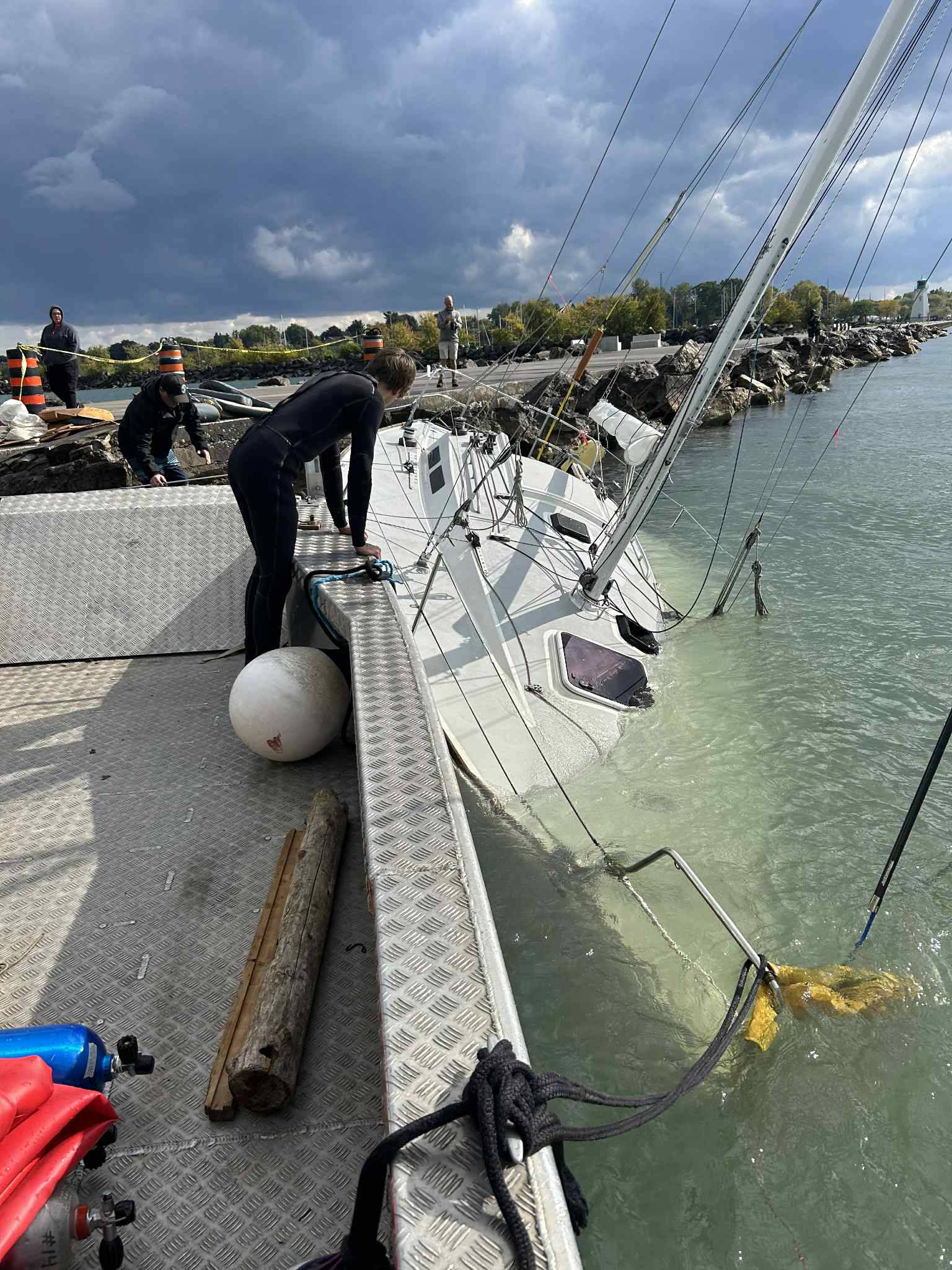 The call came in urgent and distressing. An experienced captain’s J30 sailboat, known for its sleek lines and racing pedigree, had experienced engine failure in high winds along Lake Ontario. Despite the captain’s extensive knowledge and best efforts, the powerful winds pushed the vessel onto the rocky shoreline. The hull sustained severe damage from the rocks, and the situation quickly became critical.