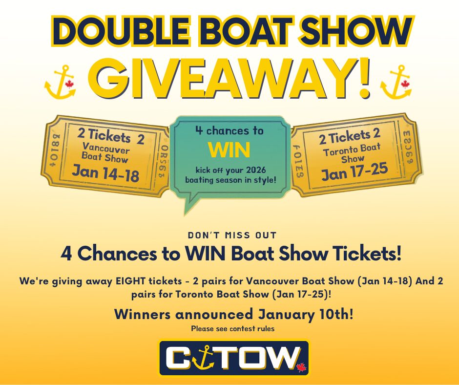 The 2026 boating season kicks off with the Vancouver Boat Show (Jan 14-18) and Toronto Boat Show (Jan 17-25) – and we’re giving away FREE tickets! We’re selecting 4 lucky winners: 2 pairs for Vancouver and 2 pairs for Toronto.