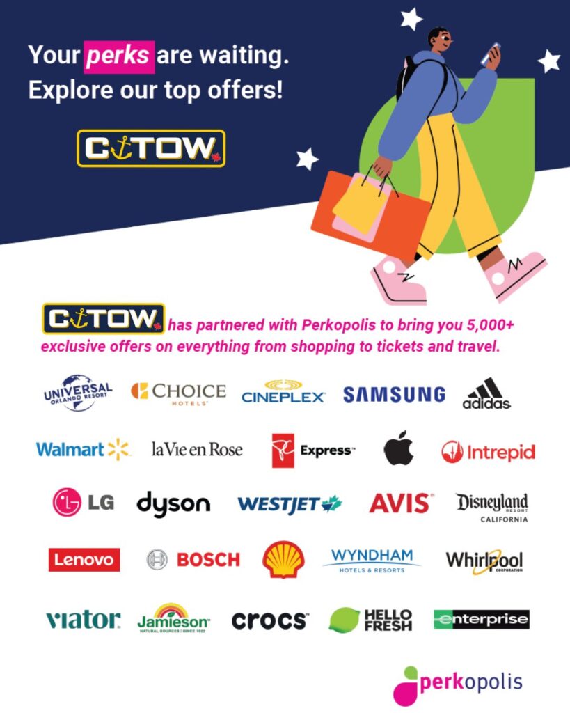 Great news: your C‑Tow membership now includes free access to Perkopolis — a members-only perks program packed with savings on everyday essentials and special treats.