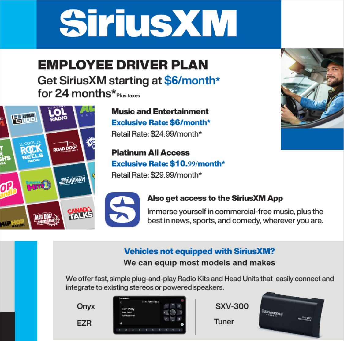 - $10.99/month (+tax) Platinum All AccessAnd you’ll also get access to the SiriusXM App.