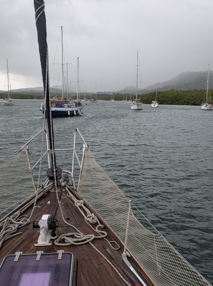 This was a crazy event which made me realize how quickly a dream can be swept away. Our strike was less than two thousands dollars worth of damage. But this man’s dream and 5 or so millions just went up in flames in a matter of hours. Minutes after the flame started it was quickly out of control. Not much can protect you from lightning. It is very unpredictable and so are the damages. Over the last six years of cruising we have met many sailors getting struck, mostly with electronics needing replacement and some with holes in the hull. We only sustained pinholes in the fiberglass which were minor. But it seems like a lottery knowing what will actually get damaged. A big rule on our boat is DO NOT TOUCH the mast when there’s a lightning storm.